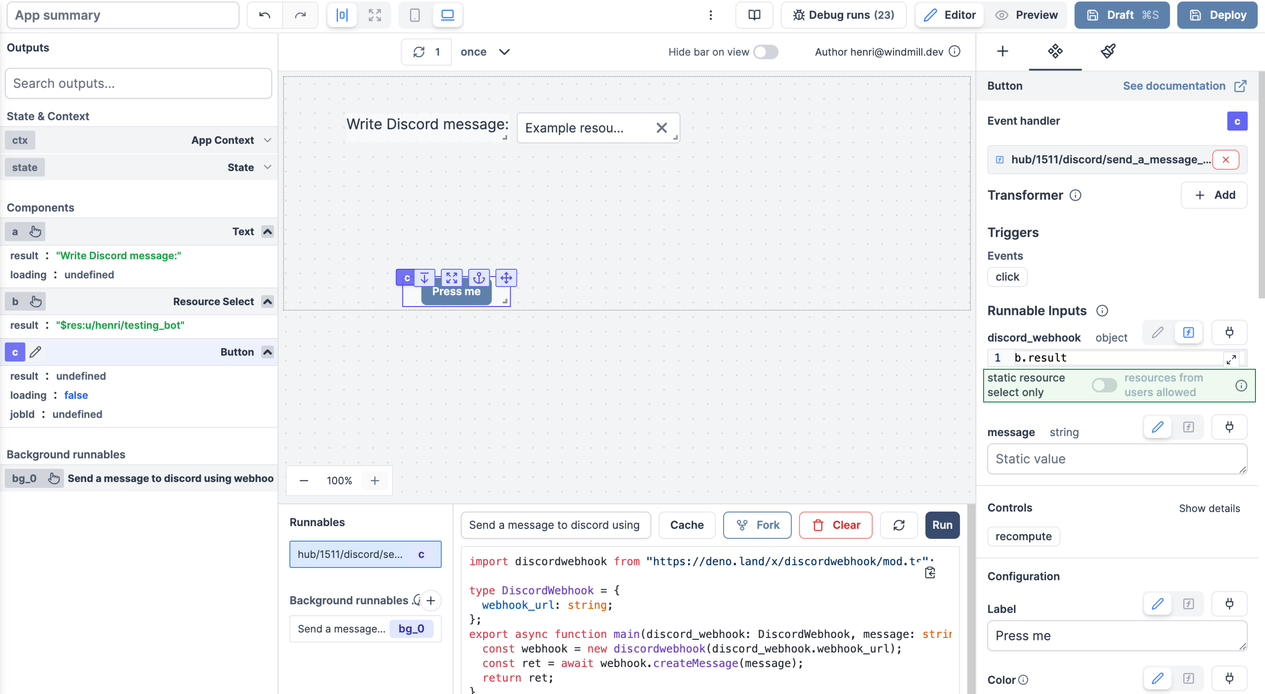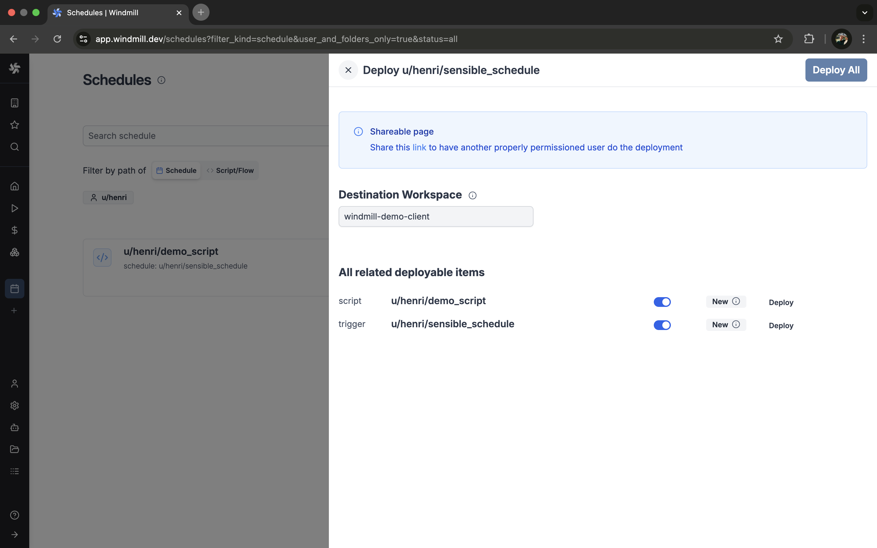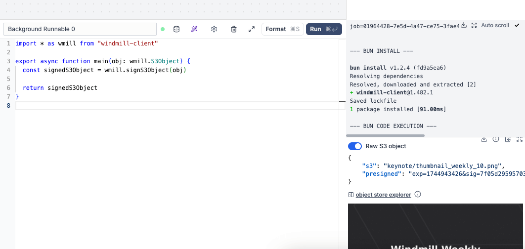 - Trigger scripts with @Windmill in public channels, private channels, DMs, and threads