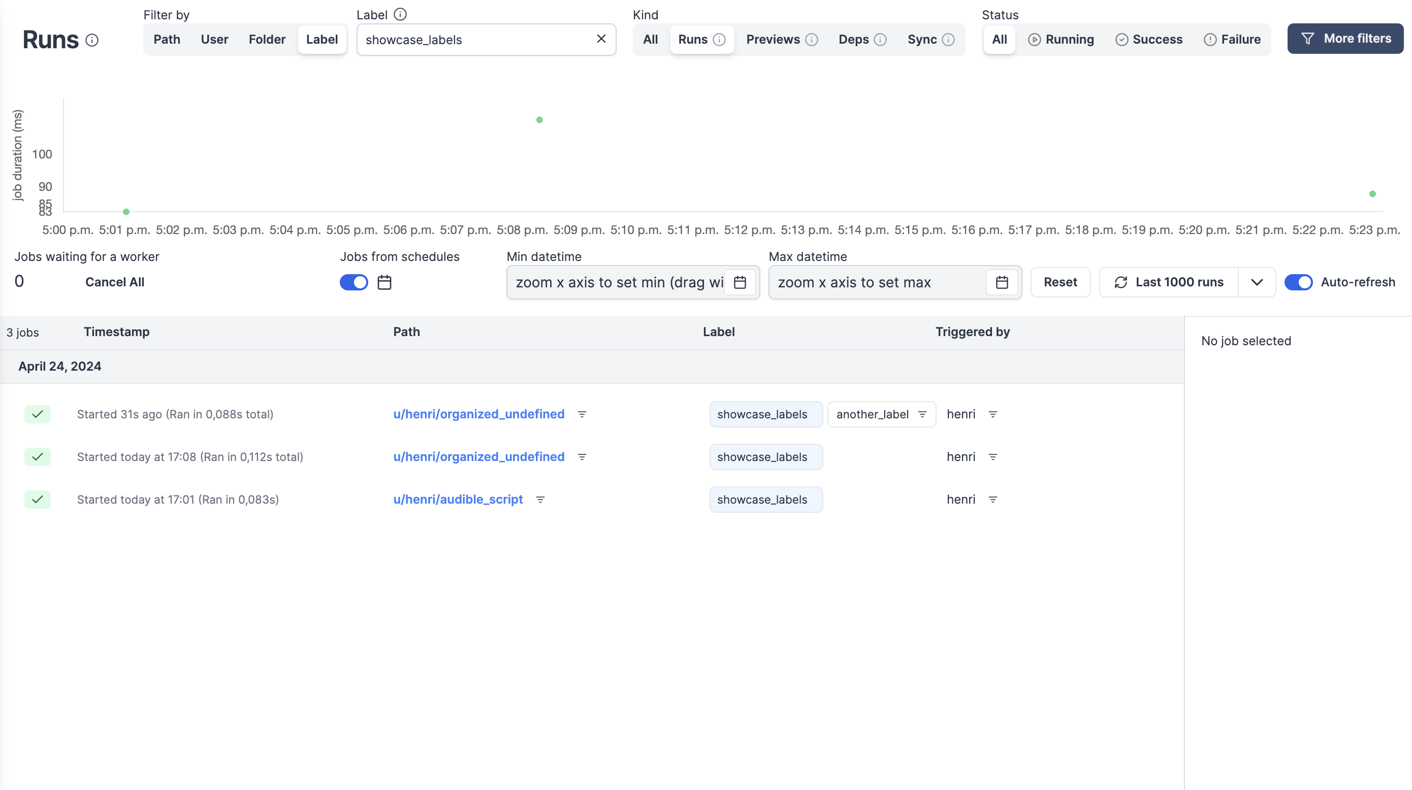 - Jobs support multiple labels.