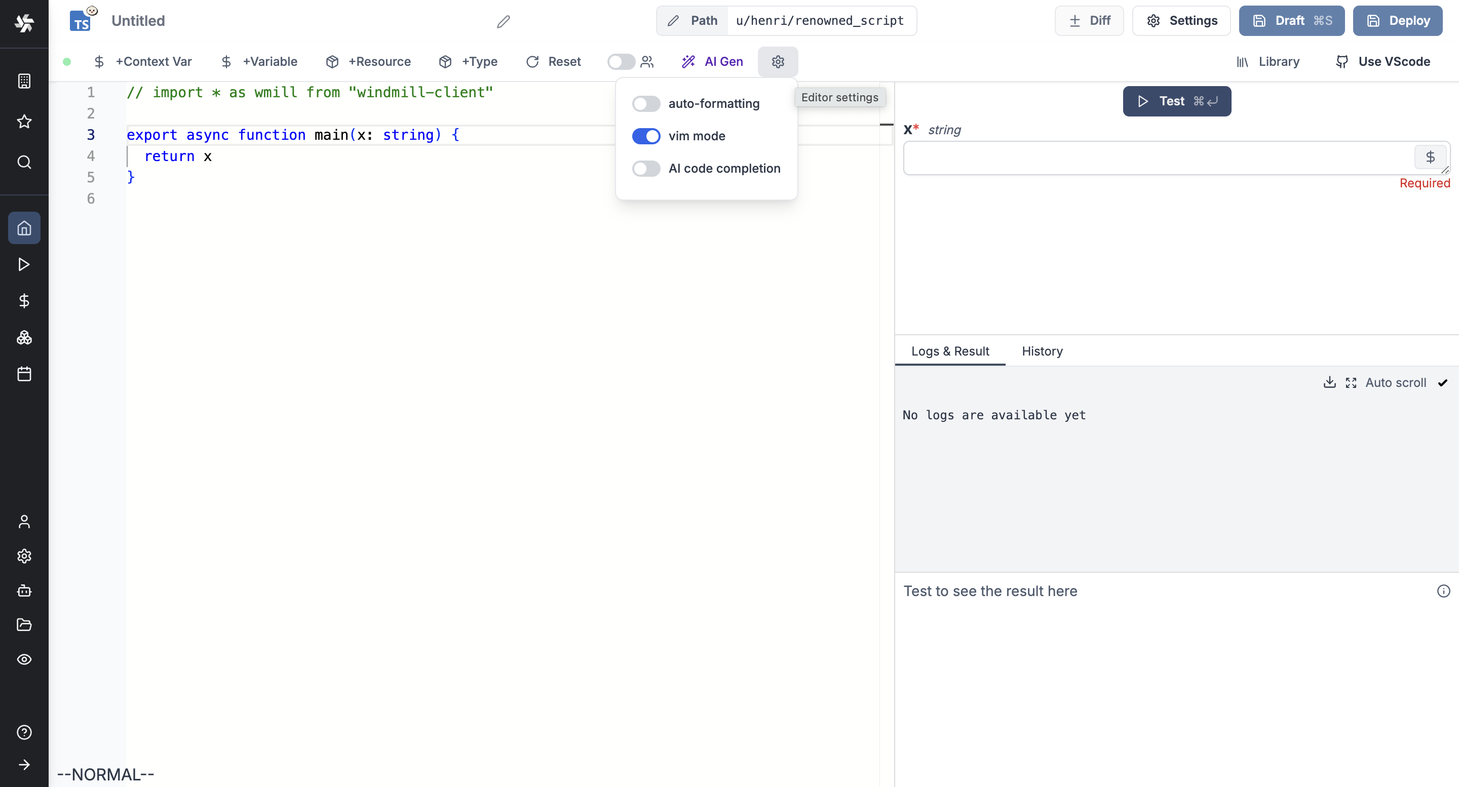 - Integrated with Windmill backend flow/script capabilities